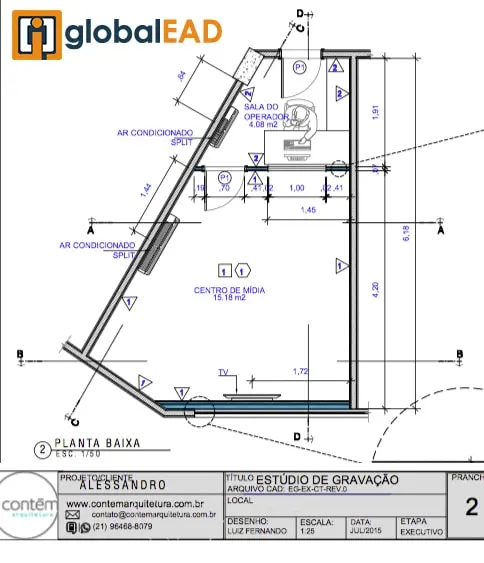 Projeto em 2D e 3D para visualizar o estúdio antes da execução;
